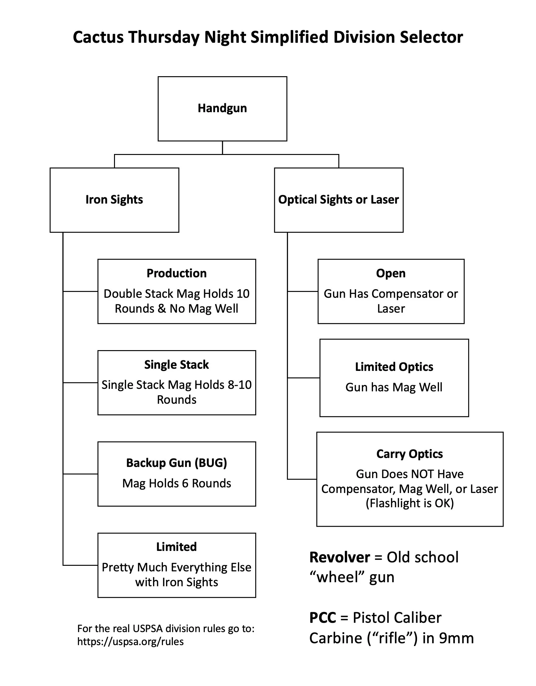 Please note these are simplified instructions for Thursday night. The full division rules can be found in Appendix D of the USPSA Competition Rules